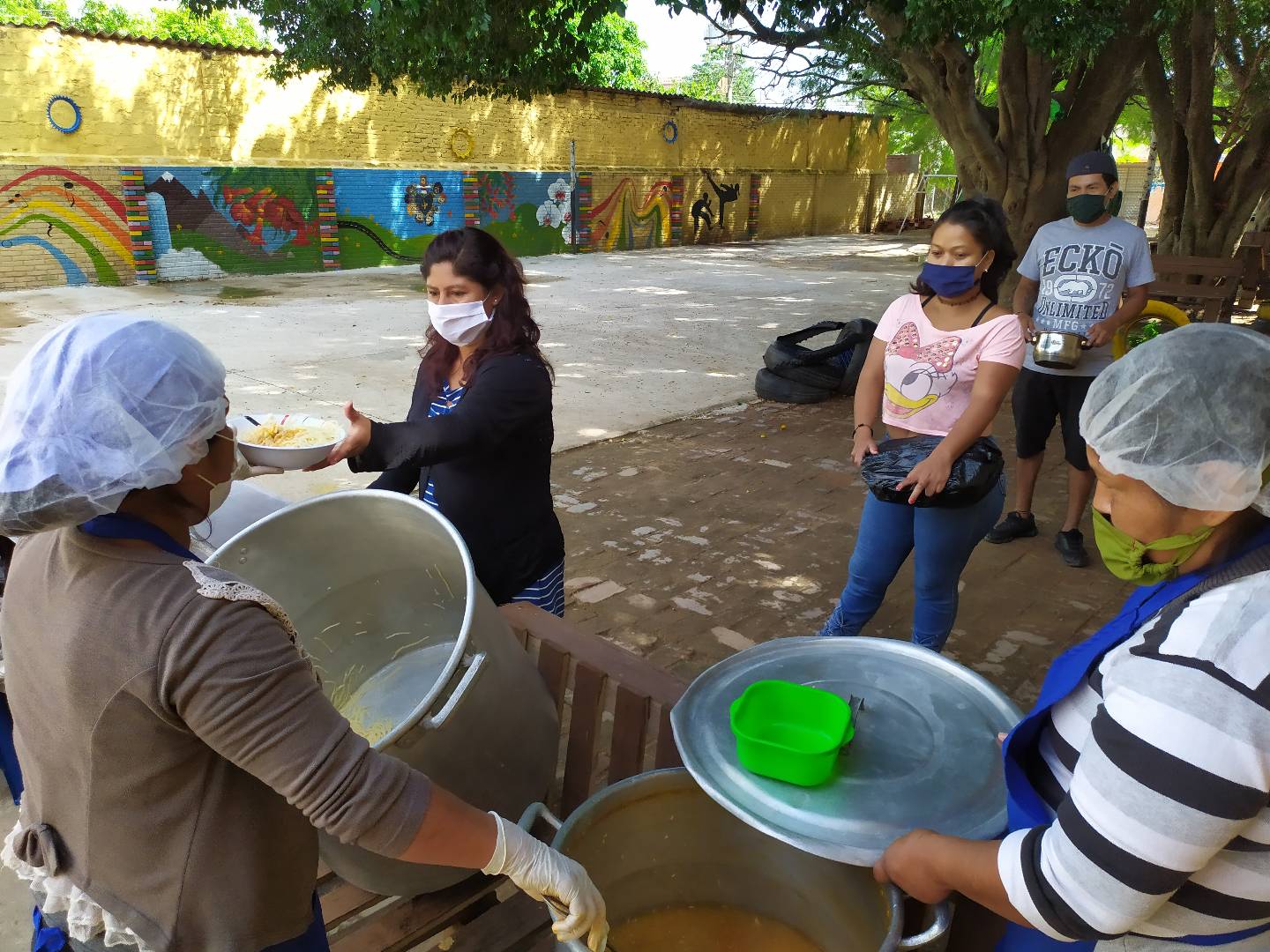 Siguiendo las orientaciones de la OMS y de las Autoridades Bolivianas, estamos recibiendo a 1 adulto responsable por cada familia, trayendo sus propios recipientes, haciendo uso del barbijo y alcohol en gel. Manteniendo la distancia recomendada.